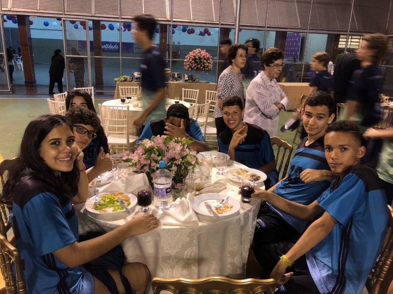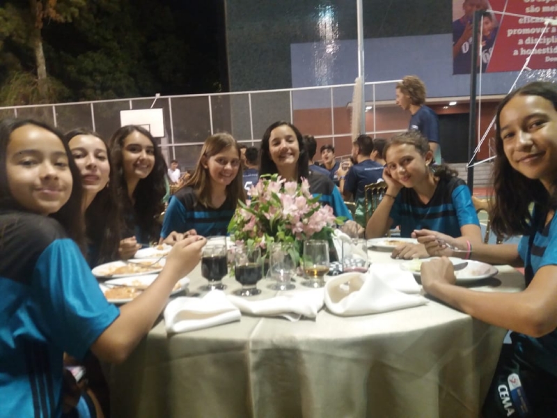 O evento começou com um delicioso jantar e grandes emoções na noite de sábado, com mostras de danças preparadas pelos alunos do ITV, com a apresentação das delegações esportivas da Inspetoria Madre Mazzarello e com o acendimento da pira olímpica para a abertura oficial dos jogos.