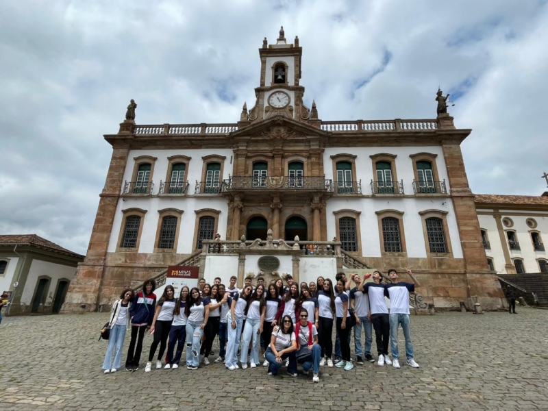 Durante a visita, os alunos exploraram importantes pontos históricos, como o Museu da Inconfidência e as igrejas de São Francisco e do Pilar, reconhecendo nas obras e construções os traços marcantes das manifestações culturais e estéticas de cada período.