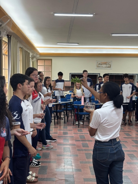 A atividade foi uma surpresa para os alunos. As diretoras Irmã Maria Helena e Marina Alves conduziram uma conversa inspiradora, desejando boa sorte e reforçando a importância de acreditar no próprio potencial. Em seguida, a coordenadora de pastoral, Diana Superbi, preparou uma leitura bíblica e conduziu o momento de bênção, convidando todos a confiarem seus sonhos e esforços a Deus.