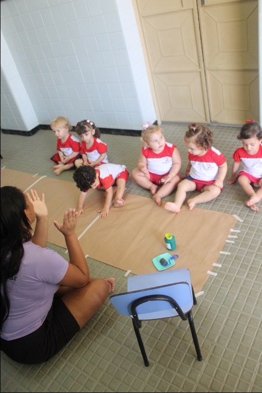 Na sequência, os pequenos carimbaram seus pezinhos com tinta verde, transformando a atividade em uma experiência criativa e cheia de descobertas. Depois, participaram de uma dinâmica de lavagem dos pés de maneira lúdica, reforçando a importância dos cuidados com a higiene no dia a dia.