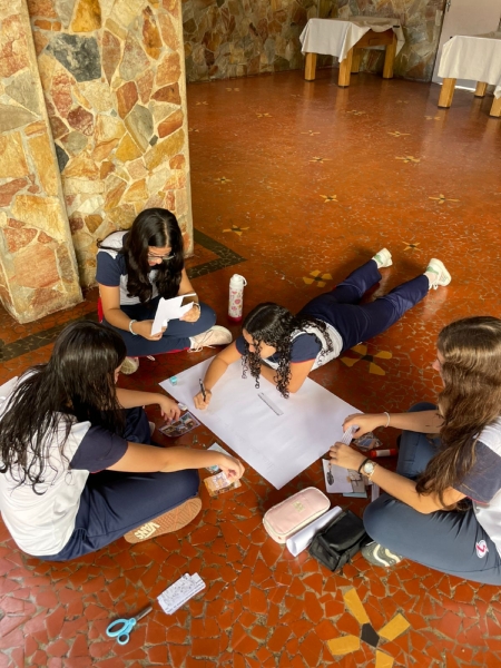 Como proposta pedagógica, os estudantes foram convidados a refletir sobre questões ambientais e, a partir disso, produziram cartazes com suas próprias ideias para evitar o colapso do meio ambiente.