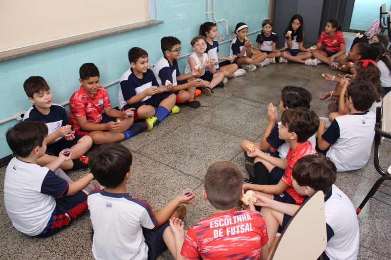 Alunos dos períodos da manhã e da tarde participaram de acolhidas especiais de Páscoa, marcadas por momentos simbólicos de partilha do pão e do suco, relembrando o gesto de Jesus como sinal de união, serviço e solidariedade.