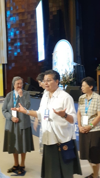 Em seguida, deu a palavra à Ir. Lucrécia Uribe, Animadora espiritual mundial da ADMA, que agradeceu às FMA presentes “porque sem vós este Congresso não teria sido possível” e por ser promotoras desta animação no local: “sois vós que administrais as dificuldades, mas sois vós que compartilhais o Carisma com os leigos… e devemos avançar com eles com muita alegria como Família Salesiana”.