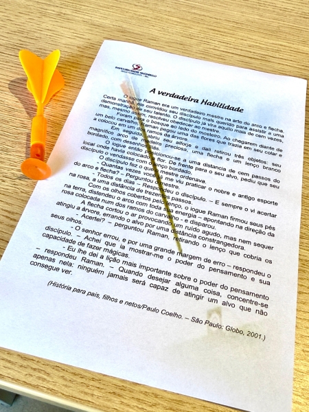 Para iniciar a dinâmica do dia, a Ir. Dircione apresentou aos participantes a metáfora “A verdadeira habilidade”, que conta a história de um iogue mestre no arco e flecha que, ao vendar os olhos, erra o alvo e ensina ao discípulo que ninguém jamais será capaz de atingir um alvo que não consegue ver. Essa reflexão foi usada como ponto de partida para destacar a importância de enxergar com clareza os sinais do presente e, assim, projetar um futuro possível e promissor.