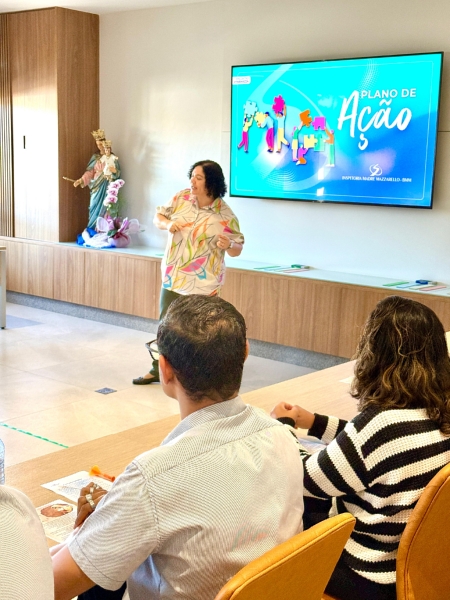 Nesta segunda-feira, 26 de maio, os/as Colaboradores/as da Sede Provincial da Inspetoria Madre Mazzarello-BMM vivenciaram mais um importante momento de integração e construção conjunta no Encontro #TimeMazza, animado pela Ir. Dircione da Glória Amorim, Coordenadora Inspetorial de Ação Social e Diretora da Comunidade. O encontro foi elaborado como uma verdadeira experiência de diálogo, escuta e partilha, permitindo que todos e todas pudessem colaborar ativamente na análise e no planejamento de ações para atividades presentes e futuras da Sede Provincial.