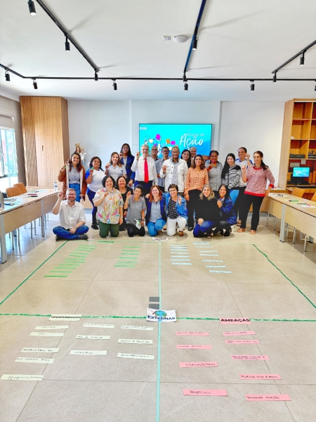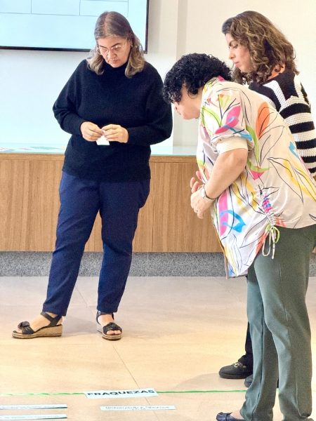 Após a análise da Matriz SWOT, o grupo se debruçou especialmente sobre as fraquezas identificadas no ambiente interno, traçando sugestões de ações que integrarão o Plano de Formação Continuada. Esse plano contempla não apenas as ações em si, mas também a definição de responsáveis, públicos-alvo e detalhes operacionais que nortearão sua implementação. Além disso, o grupo, em conjunto, definiu a prioridade das ações a serem realizadas, sinalizando com clareza quais atividades demandam um olhar mais urgente e precisam ser executadas em curto prazo, garantindo que os esforços sejam direcionados de forma estratégica e eficiente.