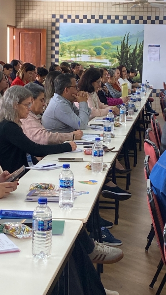 Entre os dias 10 e 12 de junho, o Retiro das Rosas, em Cachoeira do Campo-MG, acolheu o 1º Seminário de Gestão Contábil e Trabalhista da Inspetoria Madre Mazzarello-BMM. O evento contou com a presença de 110 participantes vindos/as de todas as regiões que compõem a Inspetoria, reunindo as Equipes Administrativas das Escolas, Obras Sociais, Missão Indígena, Retiro das Rosas, Casas de Encontros, de Repouso e de Formação, juntamente com integrantes da própria Sede Inspetorial. O grupo foi formado por Irmãs e leigos, com a presença de Diretoras/es, Coordenadoras/es e Colaboradores/as Administrativos/as, expressando a riqueza da comunhão e da corresponsabilidade na Missão Educativa das Filhas de Maria Auxiliadora.