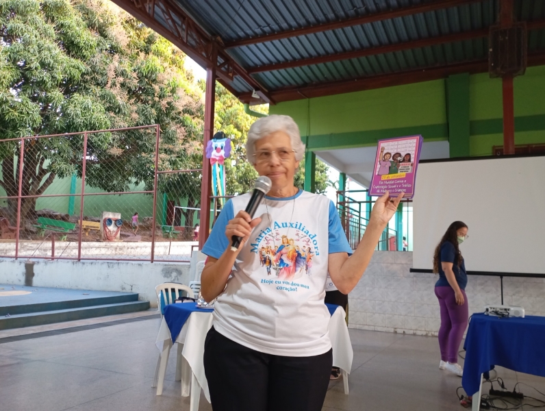 Em seguida, vivenciamos um bonito momento de oração, conduzido pela Ir. Maria do Socorro, e tivemos a presença especial da Ir. Sandra, que palestrou sobre um tema muito sério e necessário: Exploração Sexual e o Tráfico de Mulheres, Crianças e Adolescentes.
