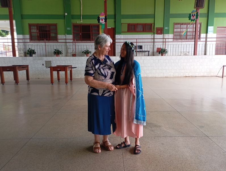 O encontro teve início com uma belíssima apresentação de dança e coral preparada pela educadora Neomênia, Irmã Ana Maria e os educandos. Em seguida, a diretora Ir. Luzia deu as boas-vindas à nossa visitante especial.