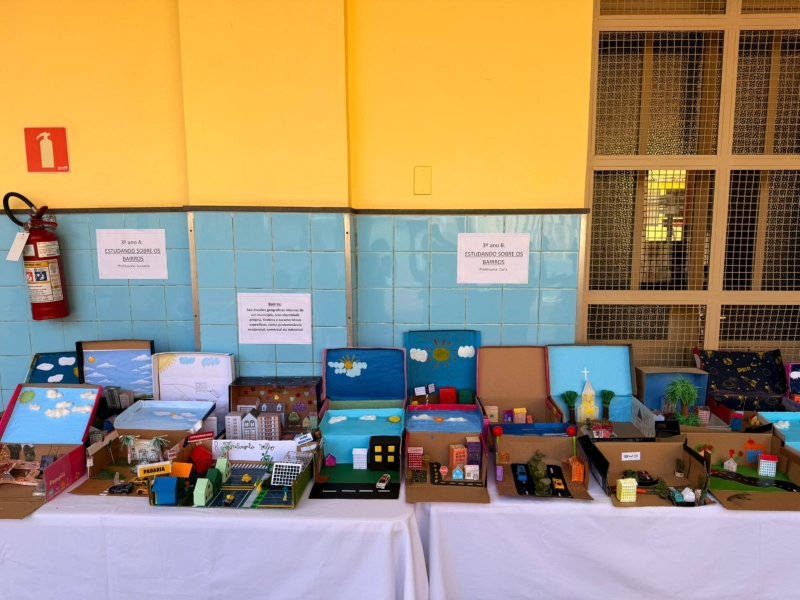 Com criatividade e dedicação, os estudantes construíram maquetes que representavam diferentes tipos de bairros, incluindo elementos como casas, prédios, ruas, comércios e áreas de lazer.