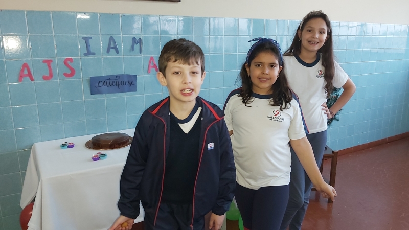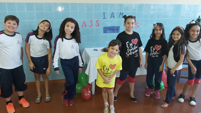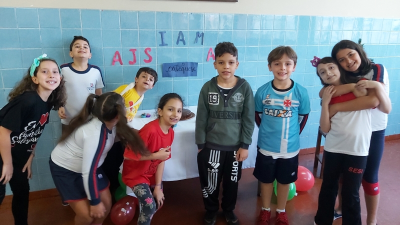 Com alegria e gratidão encerramos mais um ano de atividades com a catequese, Infância Missionária, Articulação da Juventude e Adolescência Salesiana. Que alegria a união desses grupos de crianças e adolescentes que abraçam com carinho as delicadezas de Deus! Confiamos profundamente nos passos que esses pequenos dão hoje, com a ajuda e incentivo das famílias, para serem ainda melhores quando se tornarem adultos. Algumas sementes lançadas já floresceram e já visualizamos uma colheita positiva de solidariedade, compromisso e amor ao próximo. Obrigada às educadoras Vanessa, Fabiana e Ir. Efigênia! Parabéns às famílias que orientam os filhos para uma espiritualidade cristã saudável e humanizadora.