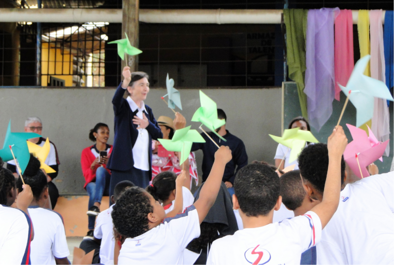 Contando com a presença de Irmãs e Leigos, Ela pôde vivenciar, em um contato bastante próximo com alunos(as), atendidos(as) e toda a Comunidade Educativa, um pouco do trabalho desenvolvido em cada região, percorrendo todos os estados que compõem a Inspetoria Madre Mazzarello: Espírito Santo, Goiás, Mato Grosso, Minas Gerais, Rio de Janeiro e Distrito Federal.