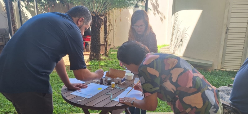 Na primeira reflexão, baseada no Evangelho de João 4:1-42, Pe. Wellington destacou o encontro de Jesus com a mulher samaritana. A narrativa, que enfatiza inclusão, perdão e transformação, motivou os participantes a expressarem suas experiências espirituais através de uma criativa atividade artística. Utilizando tecidos, tintas e canetinhas, cada colaborador representou simbolicamente sua jornada de fé, seguido por um momento emocionante de partilha entre todos do grupo.