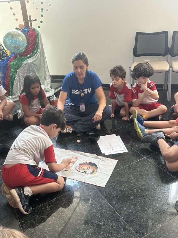 As crianças do Infantil 3, assim como as demais turmas, vivenciam semanalmente momentos na capela, onde aprendem sobre o amor de Deus, rezam, cantam e refletem de forma lúdica e significativa. Esses encontros ajudam a cultivar valores como gratidão, solidariedade, respeito e amor ao próximo.