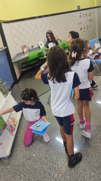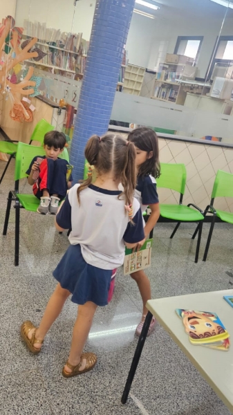 As turmas do 1º ano do Ensino Fundamental realizaram uma Feira de Troca de Livros organizada pelas professoras, com o apoio e dedicação da bibliotecária Marissol Cavalcanti. A atividade nasceu a partir da leitura do livro "Que Presente Maravilhoso", de Jonas Ribeiro.