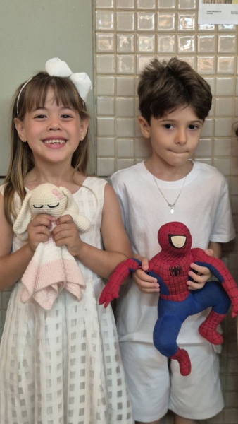 Iniciamos acolhendo as famílias, que foram convidadas a refletir sobre o percurso vivido pelas crianças, seus avanços, descobertas e jeitos singulares de aprender sobre o mundo. As crianças entraram carregando seus objetos significativos, símbolos de suas histórias, de suas infâncias e dos laços que as acompanharam até aqui. Cada passo, cada olhar e cada gesto revelavam a grandeza do caminho percorrido.