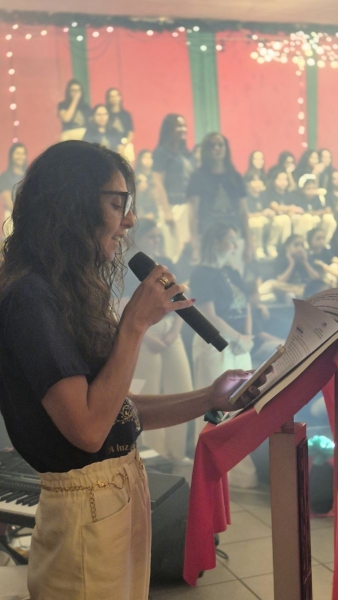 No dia 27 de novembro, nossa comunidade escolar se reuniu para celebrar a magia e a esperança do Natal em uma noite especial de encanto e emoção. A Cantata contou com a participação dedicada de alunos e colaboradores, que, com suas vozes, gestos e talentos, ajudaram a reacender memórias, despertar sentidos e revelar, mais uma vez, a beleza da verdadeira luz que habita este tempo.