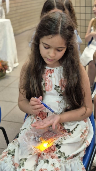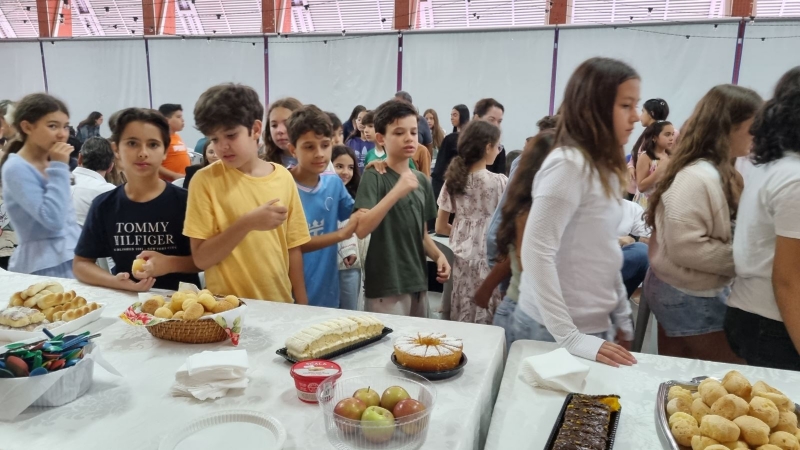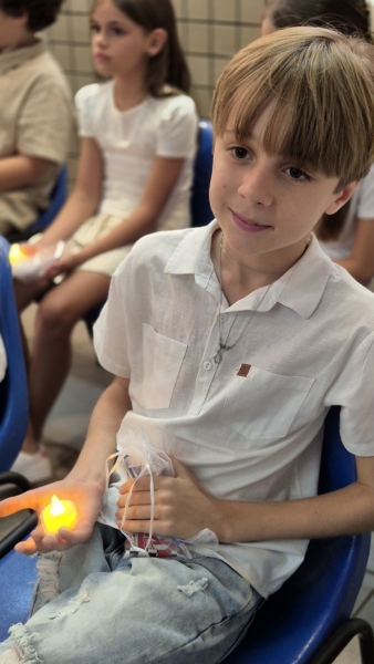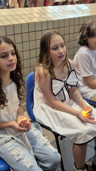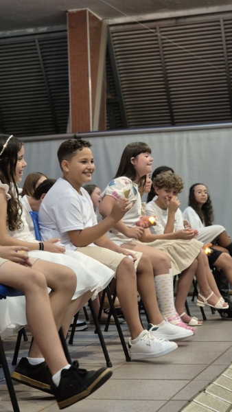 Para completar essa experiência tão especial, após a celebração os alunos participaram da aguardada Noite do Pijama, um momento de convivência, alegria e integração entre os colegas. E, na manhã seguinte, as famílias se reuniram na escola para um café da manhã afetuoso, finalizando a passagem de ciclo com presença, acolhimento e muita alegria compartilhada.