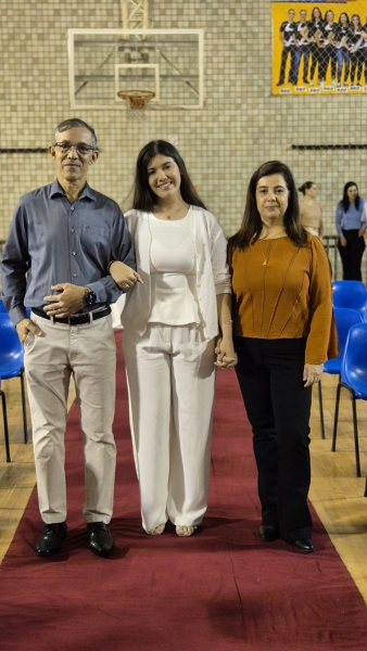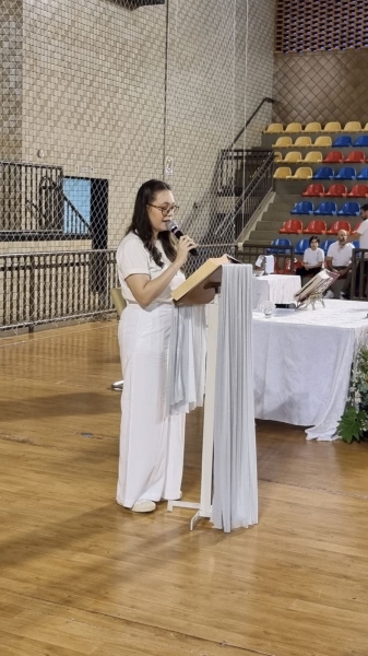 Após a Celebração Eucarística, iniciou-se o momento de homenagens, repleto de palavras de gratidão a Deus, aos pais, à turma, aos educadores, à escola e aos funcionários, reconhecendo o apoio e a dedicação que fizeram parte dessa jornada. Na sequência, a Coordenadora Sílvia Ferreira, a Diretora Pedagógica Ana Paula Gerino e a Diretora Institucional Irmã Rosa Idalia Pesca expressaram ternas palavras aos formandos, refletindo sobre a fé, a trajetória dos estudantes salesianos e reforçando a missão cumprida de ajudá-los a se tornarem “bons cristãos e honestos cidadãos”.