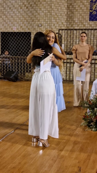 Em seguida, iniciou-se a entrega do certificado de ex-aluno salesiano, um gesto carregado de significado, que expressa o vínculo construído ao longo da caminhada educativa e pastoral. Mais do que marcar o encerramento de uma etapa da vida escolar, o momento reafirma a pertença dos estudantes à Família Salesiana, fruto da educação recebida e dos valores cultivados ao longo dos anos. O momento foi acompanhado pelo Hino da Rede Salesiana de Escolas, convidando os presentes a seguirem com ainda mais entusiasmo diante da vida e dos novos desafios que se apresentam.