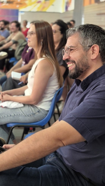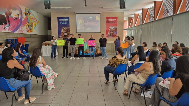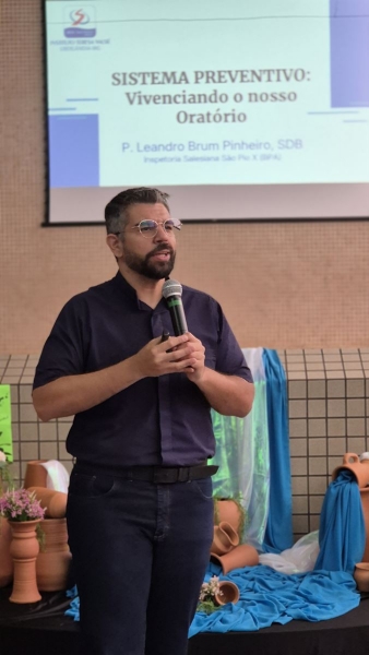 Na sequência, o salesiano de Dom Bosco, Padre Leandro Brum, da Inspetoria Salesiana São Pio X (BPA), conduziu a reflexão com o tema “Sistema Preventivo: vivenciando o nosso oratório”. A partir dessa abordagem, os educadores foram convidados a olhar para as necessidades concretas de nossas crianças, adolescentes e jovens, refletindo sobre como o currículo e as práticas pedagógicas podem responder, de forma integrada, a essas realidades.