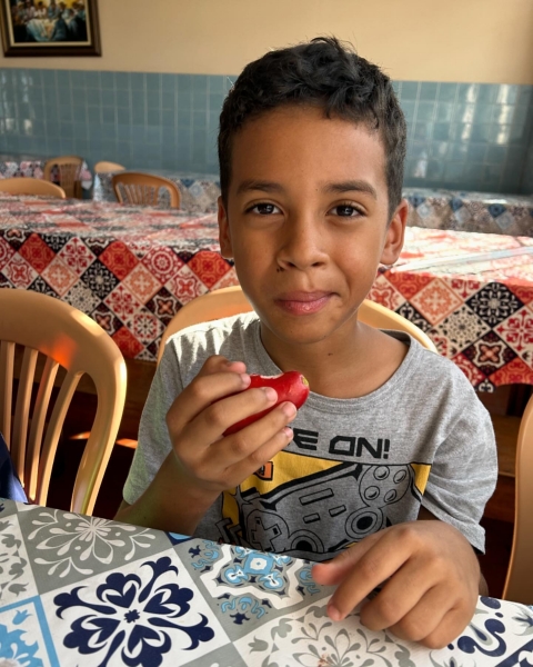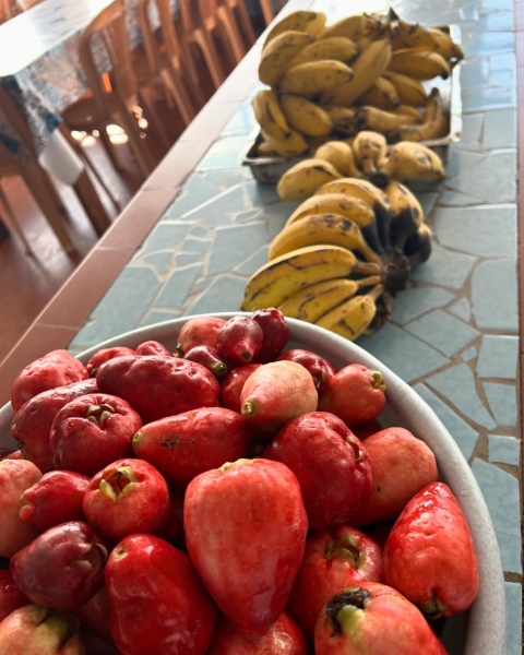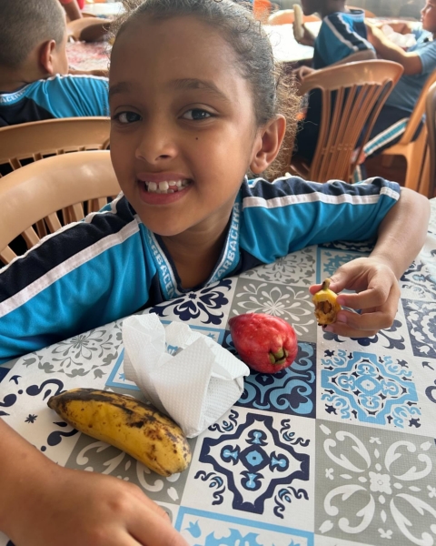 No nosso lanche saboreamos a fruta goiaba. Você sabia? A goiaba é uma fruta rica em fibras que estimulam os movimentos intestinais, melhorando a digestão. Além disso, quando se ingere com casca, ajuda a combater a acidez do estômago, sendo excelente para o tratamento de úlceras gástricas e duodenais.