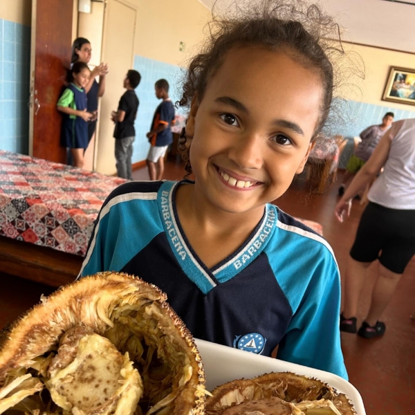 Você conhece Jaca?! A jaca é um fruto produzido pela jaqueira, uma árvore frutífera que foi introduzida no Brasil. Trata-se de um fruto rico em fibras, carboidratos, vitaminas e sais minerais. Entre as vitaminas, destaca-se a vitamina C. Já com relação aos sais minerais, podemos citar o cálcio, fósforo, ferro, potássio e magnésio.